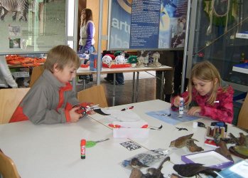 Die etwas Älteren bastelten ein Mauerseglermobile, was etwas mehr Geschick bedurfte. Diejenigen wiederum, die sich nicht entscheiden konnten, machten sich daran das Mauerseglerpuzzle im Wettbewerb mit Vater oder Mutter zusammenzusetzen. Auf diese verschiedenen Weisen vertieften sie ( ohne es zu merken) in spielerischer Form das neu gehörte Wissen über das Aussehen dieses Vogels. Erstaunlich für mich war, dass die Begleitpersonen mich nach kurzer Zeit baten entweder auch mithelfen oder selbst ein Bild herstellen zu dürfen. Väter arbeiteten meistens mit ihren Töchtern und Mütter mit ihren Söhnen (dies nur am Rande!).